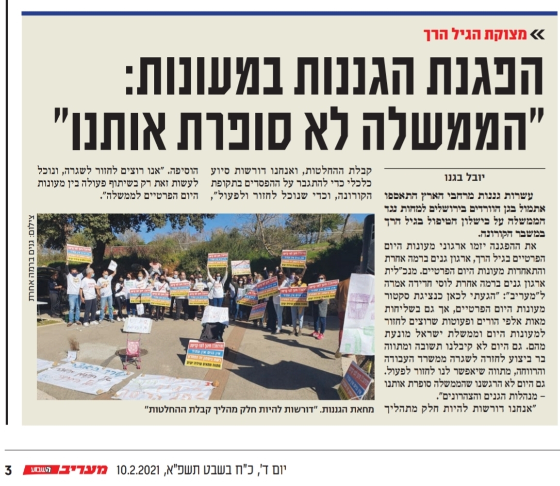 גנים ברמה אחרת ייצגה עשרות בעלי גנים פרטיים, אך מצוקות הענף כמעט ולא זכו להכרה ציבורית, והנהגת העמותה לא הייתה מוכרת בזירה התקשורתית והציבורית.