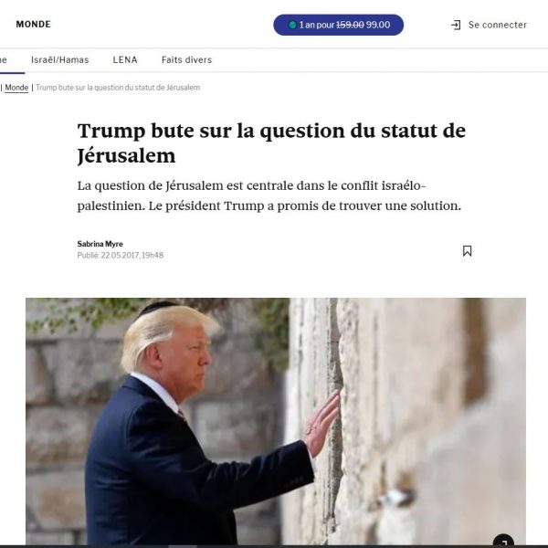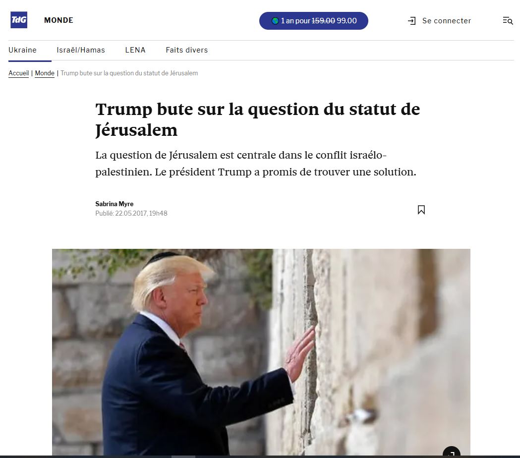 | 2017 | עיתונות | TDG | Trump bute sur la question du statut de Jérusalem | עולמי |
