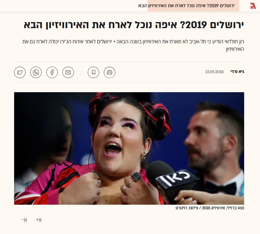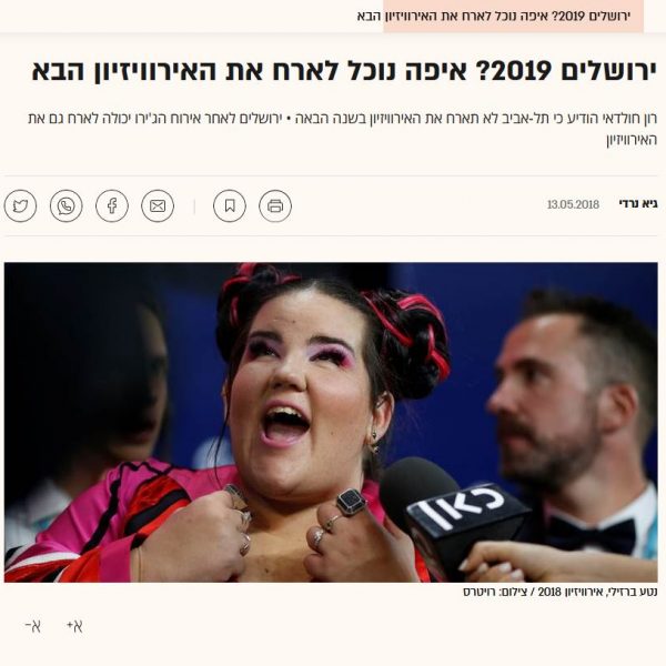 | 2018 | עיתונות | גלובס | ירושלים 2019? איפה נוכל לארח את האירוויזיון הבא | ארצי |