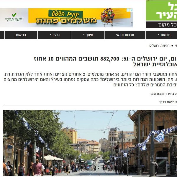 | 2018 | עיתונות | YNET | יום ירושלים 2018: ההגירה השלילית מהבירה נמשכת | ארצי |