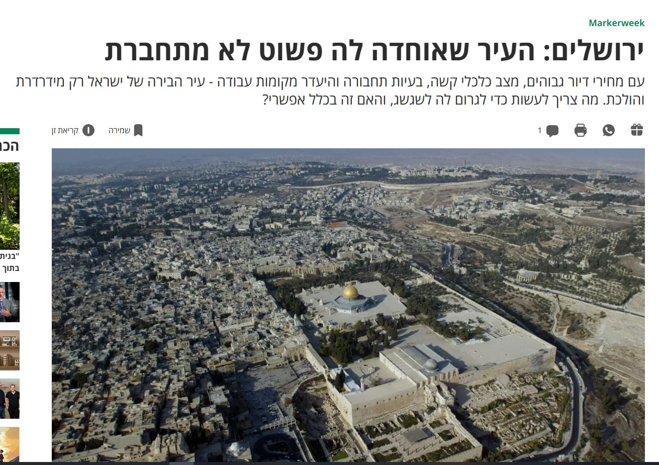 | 2017 | עיתונות | דה מרקר | - ירושלים הבנויה? הבנייה בבירה לא מדביקה את קצב גידול האוכלוסייה | ארצי |