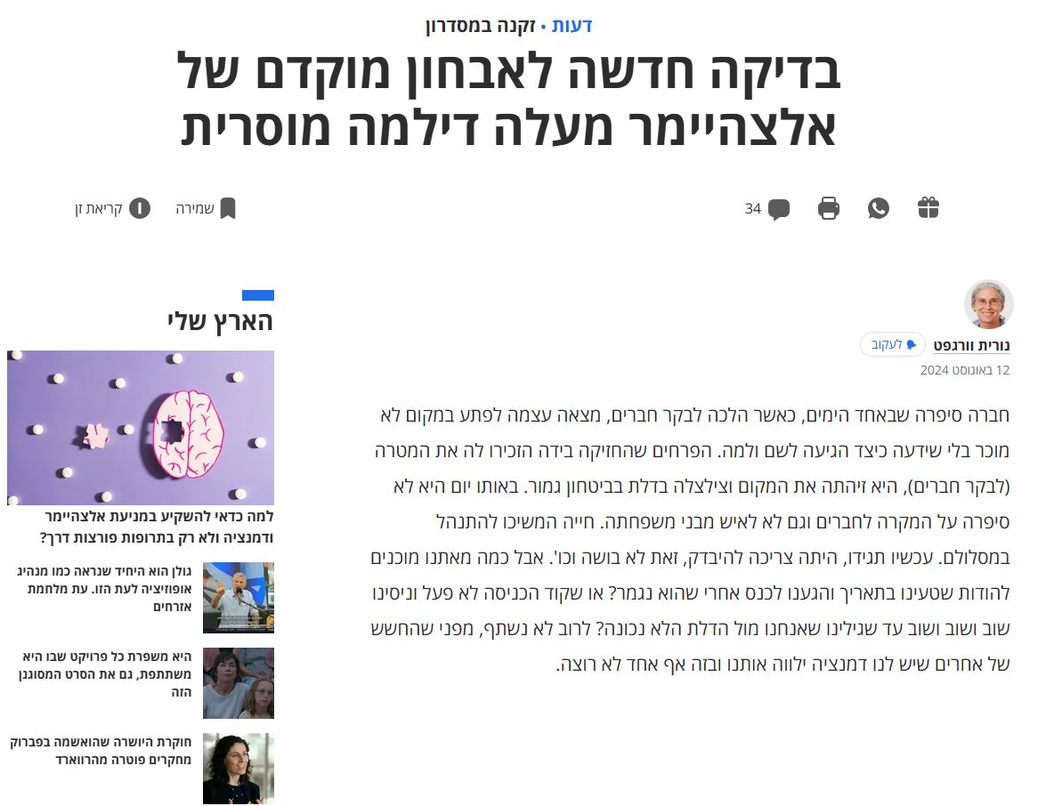 נוכחות תקשורתית מרשימה בכלי תקשורת בכלל המגזרים, וביחס להשקעה התקציבית ביח"צ, ייסוד חודש האלצהיימר וימי שיא לנושא.