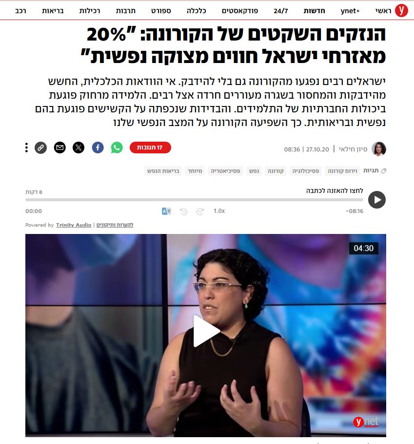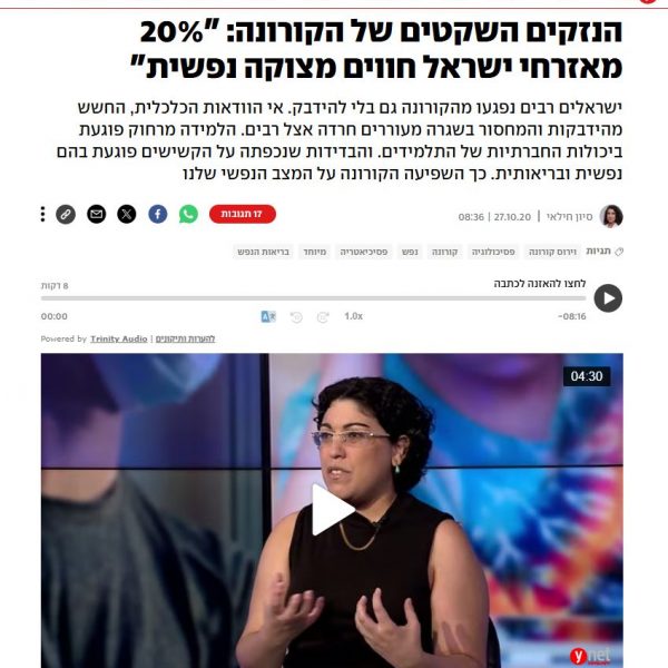 הצפה של הנושא בסדר היום הציבורי, והפיכתו לנושא חוצה מפלגות, מניעת הקיצוץ הצפוי במתמחי הפסיכולוגיה הציבורית (2021) ומיתוג של ד"ר ירדן מנדלסון ככתובת עבור עיתונאים והקהל הרחב בכל הקשור לפסיכולוגים ופסיכולוגיה ציבורית.